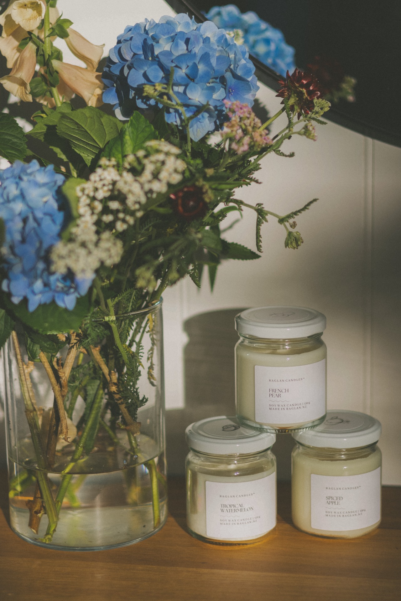 Add a warm, coastal touch to your space with our best-selling candle, a simple glass jar paired with a stunning white lid, inspired by the classic Raglan beach style you love.